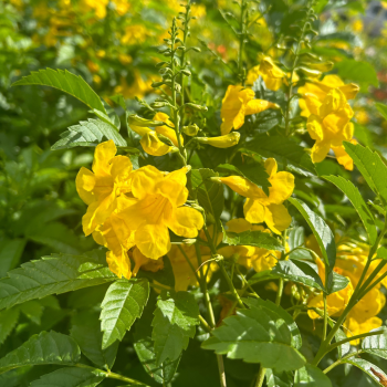 Also known as Yellow Bells, Esperanza stands out with its striking golden-yellow, or orange, flowers that bloom profusely during the summer. This heat-loving plant adds a burst of color to gardens and landscapes, making it a very popular choice in the season.